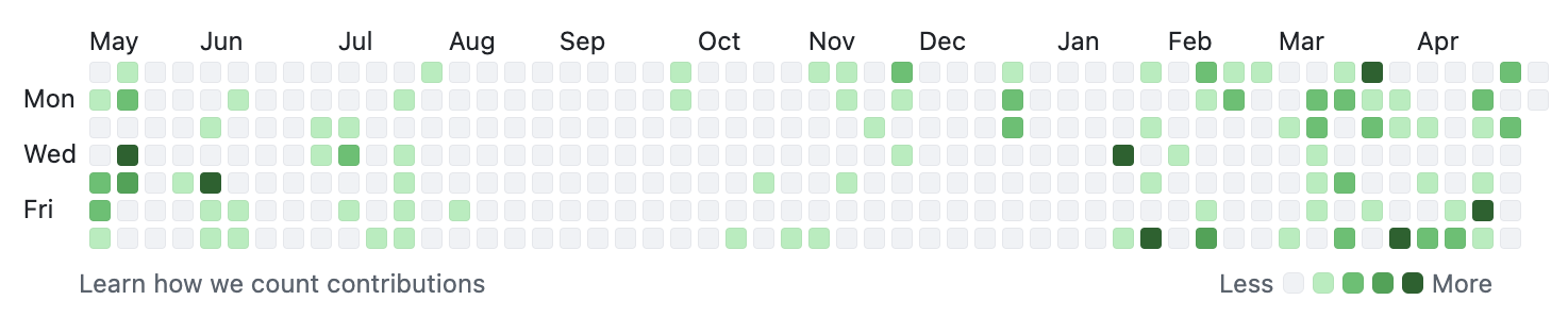 As software engineers, GitHub is one of the most important tools in our arsenal. We use it to host our projects, collaborate with other engineers, and to capitalize on the skills and curiosity of the open source community. When it comes to understanding one's GitHub activity, the user interface provides us with the ubiqutous heatmap that has made its way to other websites such as LeetCode: